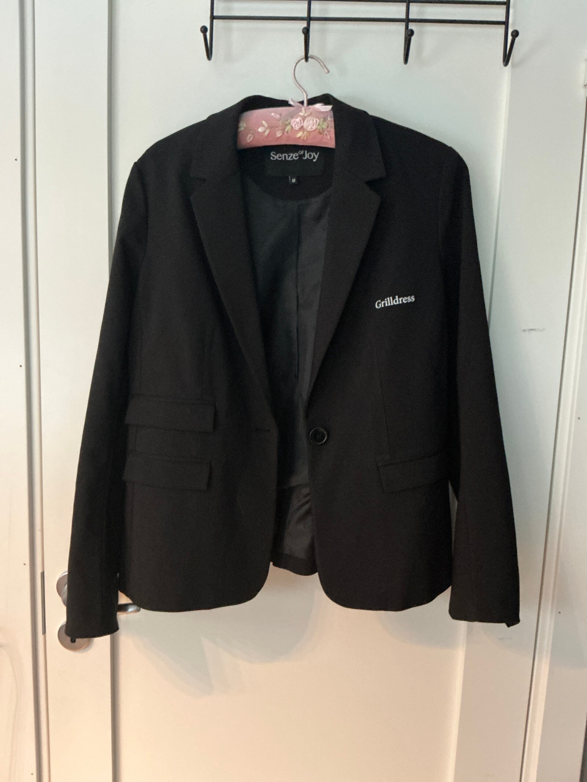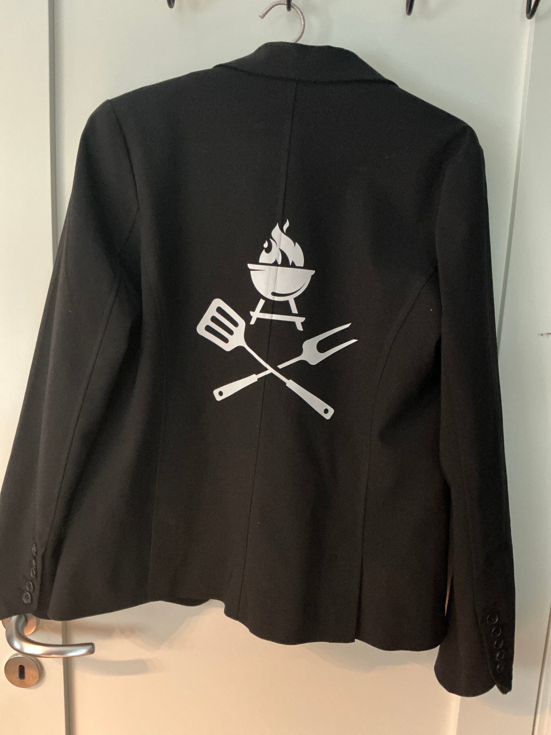 Dronninga av grillen? Brukt jakke, men like fin, trykk foran og bak. Str M, sort